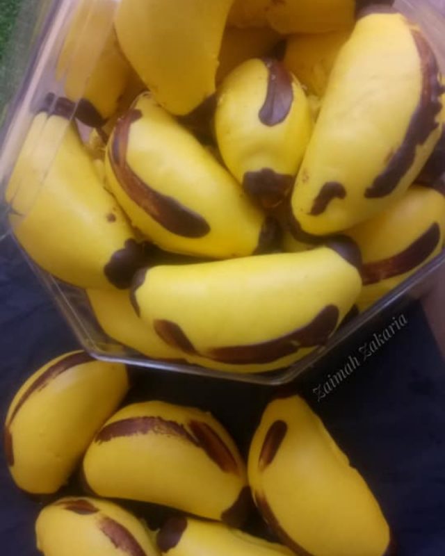 Cara bikin pisang comel. Sangat senang nak buat. Tapi kedua-dua pisang ni memang comel dan manis. 5 biji pisang 4 biji telur 34 cawan gula 1 penutup esen pisang 1 sdb ovallate 12 cawan minyak 12 cawan marjerin dicairkan Cara Membuat.